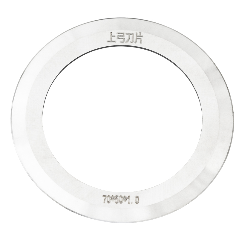 半斷分條機(jī)刀片屬于一種非常精密的刀具,外徑累計(jì)公差在正負(fù)0.02MM(人的頭發(fā)正常在0.08MM)主要是用于兩層材料在分切是底部一層不斷上層材料斷的分切加工,目前只有兩種材質(zhì),SKH-51和鎢鋼材質(zhì),鎢鋼材質(zhì)的缺點(diǎn)硬度高脆,調(diào)刀時(shí)容易碎口,故鎢鋼相較于SKH-51價(jià)格稍微低一點(diǎn),但是高硬度又給它帶來了不錯(cuò)的耐磨性。