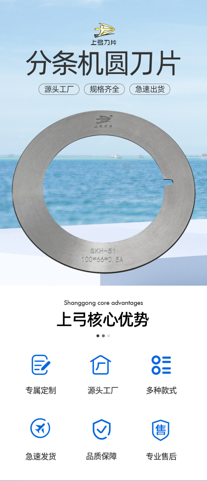 本公司生產(chǎn)的分條機上下刀廣泛用于紙類、塑膠薄膜類、布類、發(fā)泡類泡棉、橡膠類、金屬銅鋁箔、石墨烯材料的分切加工。此類產(chǎn)品經(jīng)過專業(yè)的設(shè)備磨削加工而成。產(chǎn)品具有外觀好,精度高,換刀頻次少,壽命長,具有極高的性價比。